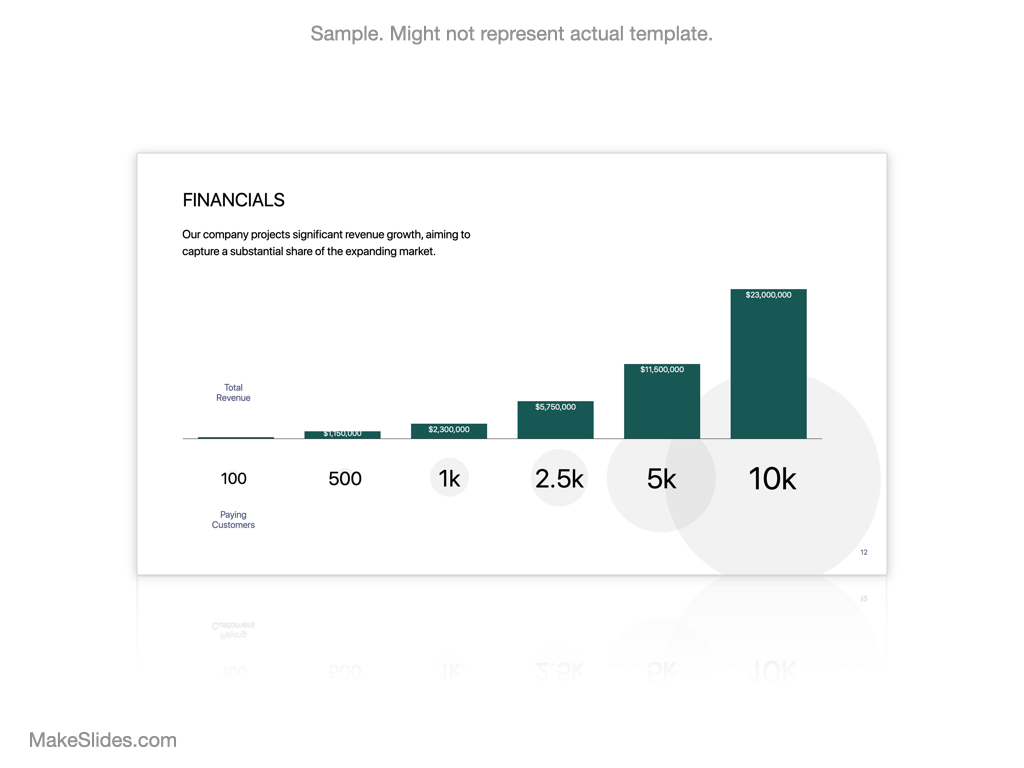 If your startup has already achieved milestones—such as revenue, customer acquisition, partnerships, or product development—this is the slide to shine. Showcase your momentum with data and real-world proof points that validate your solution.